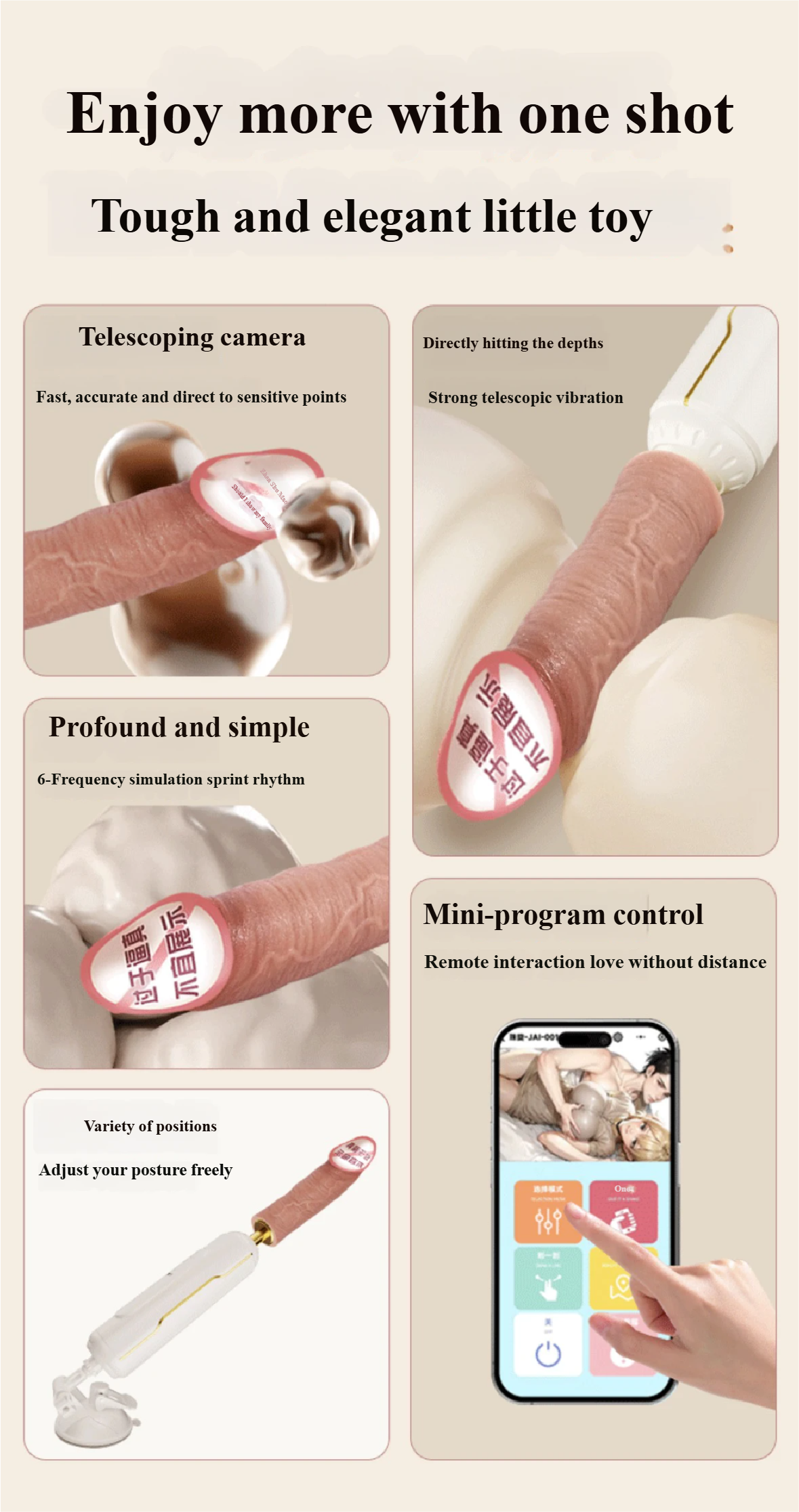 Equipped with a high-efficiency power unit, it achieves stable automatic telescopic operation that simulates natural rhythms. You can adjust the frequency and amplitude according to personal preferences, enjoying an immersive experience without manual operation. With simple and intuitive controls, even beginners can get started quickly.